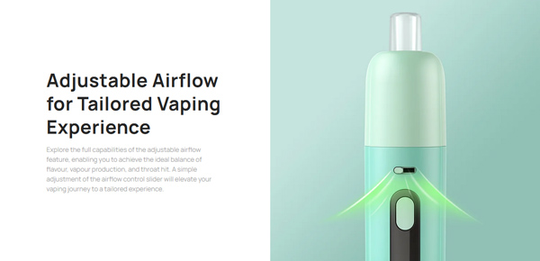 Explorez toutes les capacités de la fonction de débit d’air réglable, vous permettant d’atteindre l’équilibre idéal entre la saveur, la production de vapeur et le hit en gorge.