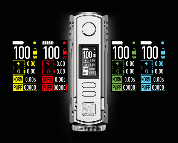La box Rayden 100 V2, est équipée d'un écran lumineux de 0.91 pouce pour vous indiquer vos paramètres de vape.