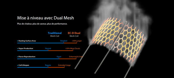 Les mèches EC-D sont équipées d'un dual mesh, pour plus de chaleur, plus de saveur et plus de performance.