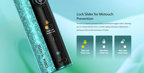 Évitez l'activation accidentelle avec un commutateur à bascule pratique, vous permettant de verrouiller ou de déverrouiller indépendamment le vapotage et le réglage de la puissance, ce qui vous donne un contrôle total et la tranquillité d'esprit.
