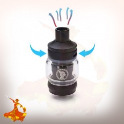 Amorcer la nouvelle résistance lors du premier remplissage, versez quelques gouttes de e-Liquide sur le coton, et aspirez plusieurs fois (par le drip tip). Vous pouvez fermer au maximum l'airflow réglable pour faciliter la montée du liquide dans les mèches.