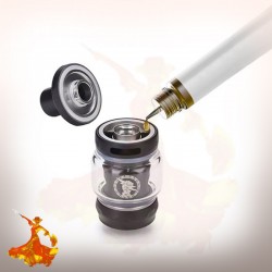 Amorcer la nouvelle résistance lors du premier remplissage, versez quelques gouttes de e-Liquide sur le coton, et aspirez plusieurs fois (par le drip tip). Vous pouvez fermer au maximum l'airflow réglable pour faciliter la montée du liquide dans les mèches.