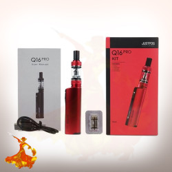 Le pack Q16 Pro de Just fog se compose du mod Q16 Pro de 900 mAh, et d'un clearomiseur Q16 Pro de 1.9 ml.