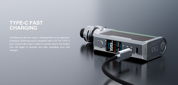 La box Centaurus Q200 de Lost Vape, est une box électronique délivrant jusqu'à 200w et fonctionne avec deux accus 18650 (non inclus).
