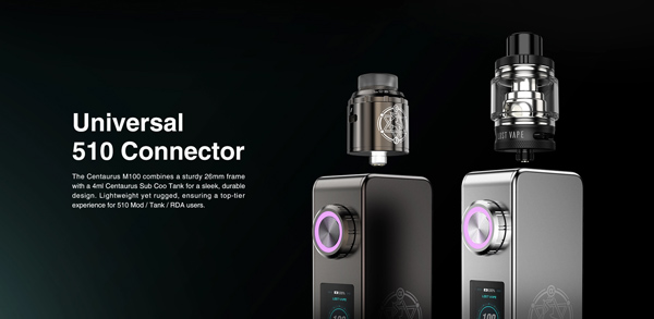 La box Centaurus M100 de Lost Vape, fonctionne avec un accu 18650 (non fourni) et permet l'utilisation jusqu'à 100w de puissance maximale.