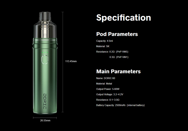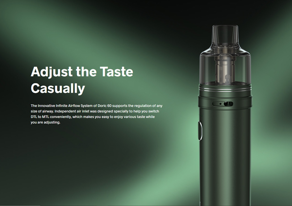 Le Doric 60, est un pod au look élégant inspiré des mystérieux piliers de l'ancien panthéon romain.